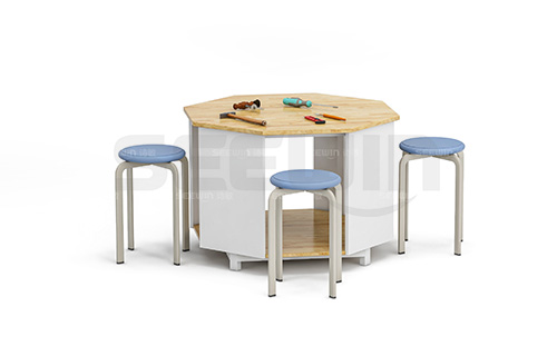 产品桌面采用橡胶木指接板,造型简洁大方,坚固耐用,下层桌面可提供储物空间,存放上课工具,适合